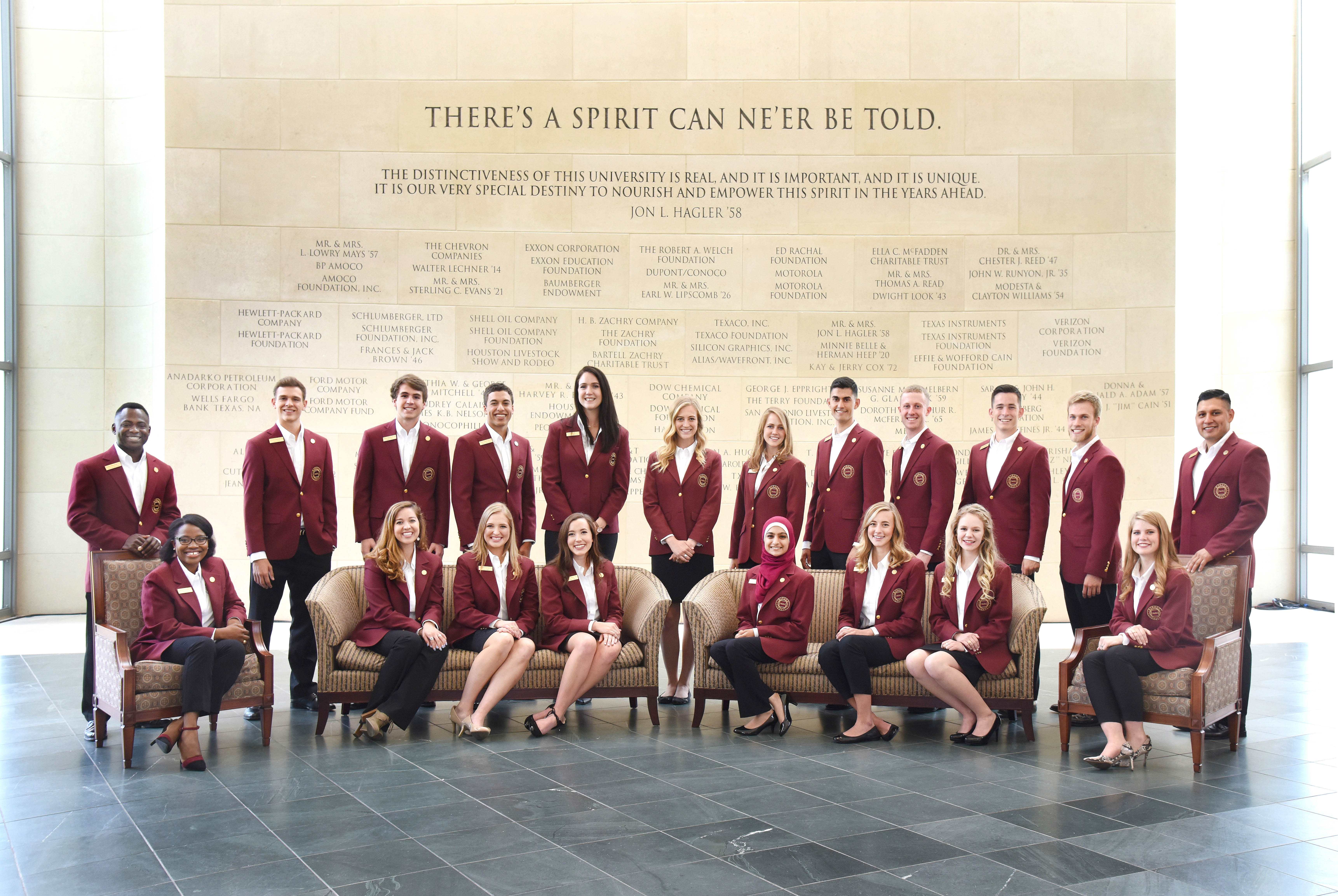 “I like to describe the Maroon Coats as a living link between our donors and current students,” he said. “We keep talking about our Maroon Coats’ great talents and leadership skills, but I must also mention that this impressive group is comprised of amazing individuals, each of whom has his or her special Aggie story. They all wear the coat. They all had to make it through a rigorous and competitive selection process. They are all involved as leaders of campus programs and activities. And of course they all love Texas A&M University.