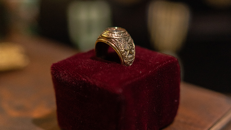 Two years later, in 1946, a German named Alfred Hutmacher found a gold ring and pocketed it. Putting it in a desk drawer, he forgot about it again for the next 56 years. Then, in 2000, when his son-in-law, German Army Lt. Obit Volker Lossner, asked about the battle, it caused Hutmacher to remember the unique piece of history he had collected years before. Upon closer examination of the ring, Lossner noticed a name engraved on the inside, sparking a quest to return the ring to its rightful owner. In a matter of weeks, they traced the name and ring back to Texas A&M, and in November 2000, Leonard’s ring found its way back to Aggieland.