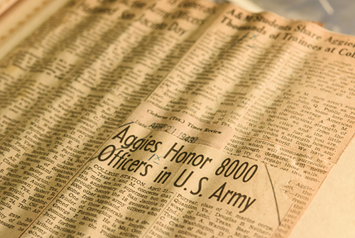 Individuals can always donate artifacts, photos, programs, speeches and flyers from past Musters. We would love to add items from around the world to document this important Aggie tradition. Some of these items need special care because of their fragility. To physically preserve items, we have a preservation and conservation department staffed by professionals who handle paper-based materials, but other items are sometimes sent to specialists who handle textiles or metals. All preservation efforts are expensive, so financial contributions are always appreciated.