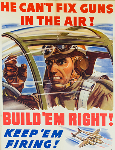 This poster, produced by General Motors Corporation in 1942, was designed to persuade Americans that factories were an important aspect of the war effort and create a sense of unity.