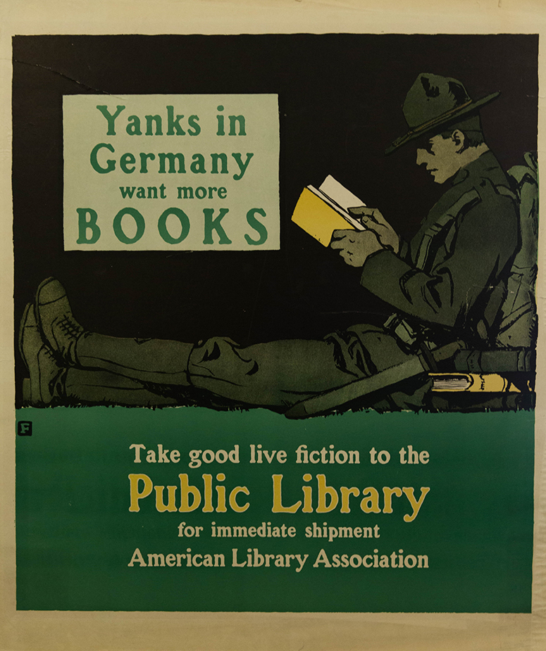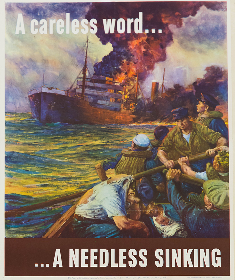 During World War I and World War II, propaganda posters were often printed by the U.S. Government Printing Office to spread patriotism and information about the war efforts. Poster themes range from recruiting to encouraging civilians to ration their food and buy bonds. In fact, the common idiom “loose lips sink ships” derives from a propaganda poster printed during World War II that discourages talking publicly about sensitive or confidential information that might give an advantage to the enemy.