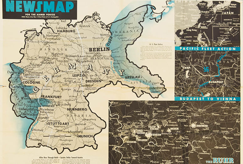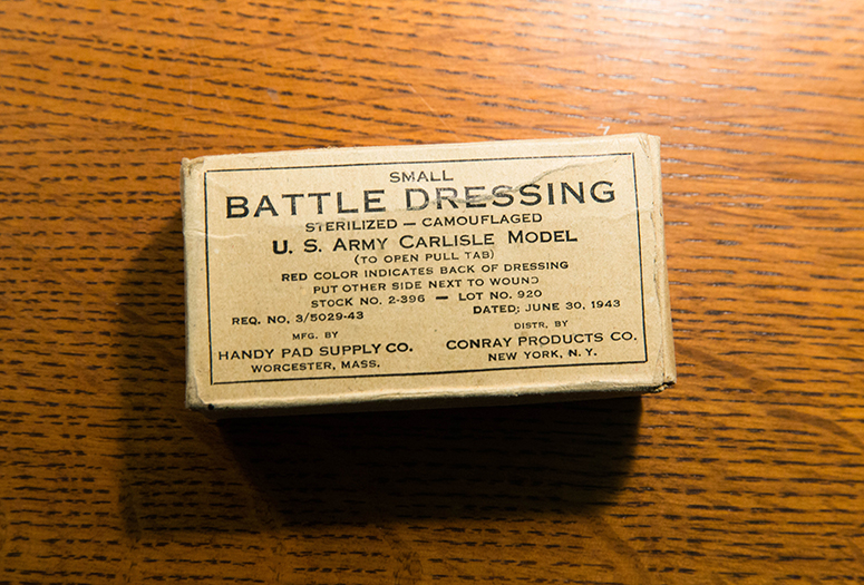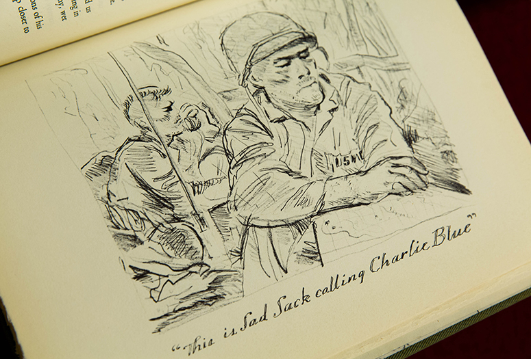 Cushing Memorial Library & Archives loaned items from the Ragan Military History Collection to the exhibit "Texas Aggies Go To War,” which opened locally in August at the J. Wayne Stark Museum located on campus in the Memorial Student Center. The exhibit originally debuted in Bastogne, Belgium, in December 2014 as part of the 70th anniversary commemoration of the Battle of the Bulge. The exhibit, which continues through December, tells the story of five Texas A&M former students who played pivotal roles in the battle which led to the Allied victory in Europe. These five men—James Hollingsworth ’40, Turney Leonard ’42, Willie Peña ’42, Joe Routt ’37 and Earl Rudder ’32— are representative not only of all Aggies, but all Americans who served in World War II.