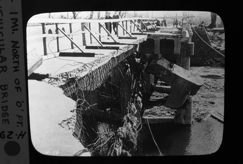 Some of the physical objects used by soldiers include an American World War I band uniform, a German canteen, a sterilized camp battle dressing kit, a Spanish-American War walking cane, a mirror for shaving and even cannonballs from the Texas Revolution. Perhaps one of the collection’s most harrowing items is a wooden box full of lantern slides, or transparent photographic plates, that depict the devastating aftermath of the bomb-drop zones in Hiroshima and Nagasaki, Japan.