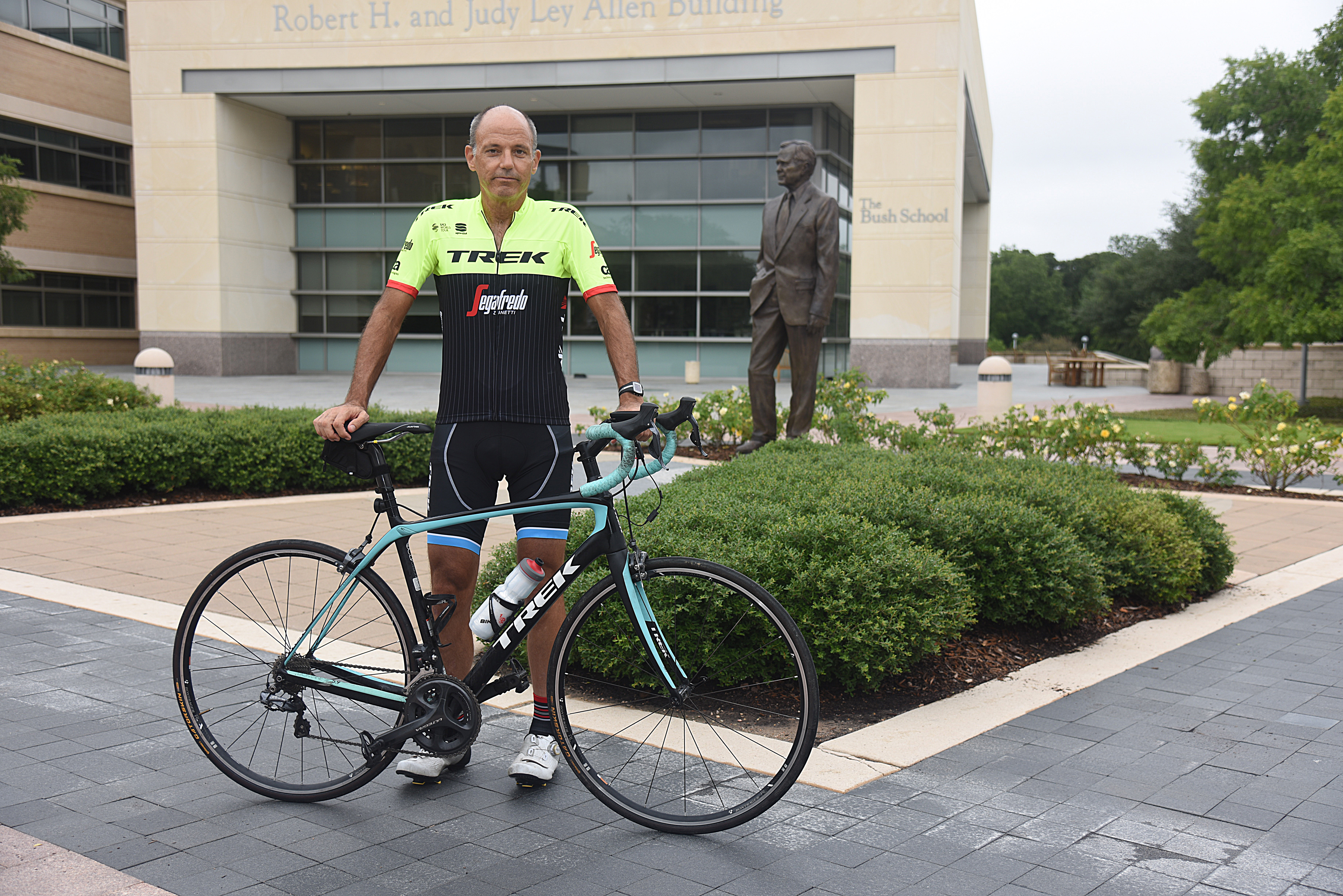 Houston lawyer Michael "Mickey" Branisa bicycles across the country to honor his late son and raise support for the Bush School of Government and Public Service.