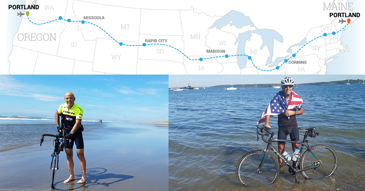 He will begin in Portland, Oregon, on Aug. 20 and finish in Portland, Maine, on Oct. 4. He’s been an avid bicyclist for 30 years and has already taken a partial sabbatical from practicing law to begin training and riding the trek.