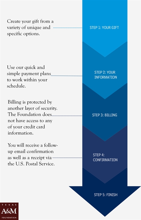 Donating through the Texas A&M Foundation’s online giving platform is a hassle-free way to make a difference for Texas A&M in the college or program of your choice.