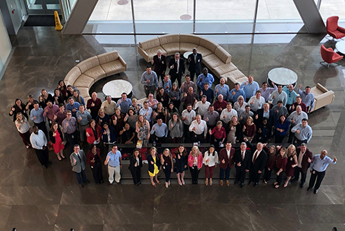 In the world of corporate America, perhaps no company bleeds maroon more than ExxonMobil. Led by CEO Darren Woods ’87, the multinational oil and gas giant hires a large number of Texas A&M University graduates annually and employs more than 1,400 Aggies. Pictured are members of the company's ExxonMobil A&M Club.