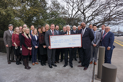 The North Dallas Bank & Trust Co. (NDBT) invested in future bankers by committing $1 million to the Commercial Banking Program in Texas A&M University’s Mays Business School. Pictured holding the check from left to right is Larry Miller, president of NDBT; Dwight Garey '67, executive director of the Commercial Banking Program; and Eli Jones, dean of Mays Business School.