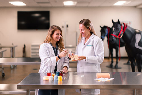 Griffey’s gift will support the Clinical Skills Laboratory and Veterinary Makerspace, where Dr. Elizabeth Scallan ’01 (right) instructs future veterinarians.