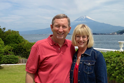 Michelle '80 and Brooks Herring '80, who recently endowed the MSC Reynolds Award, are pictured at Mt. Fuji, Japan, when they lived in Tokyo during an overseas work assignment.