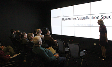 “One of the goals of the center is to really help faculty who are traditional scholars come to the digital humanities and not see it as the enemy,” said Dr. Laura Mandell, Professor of English and Director of the Initiative for Digital Humanities, Media, and Culture (IDHMC), which aims to help student and faculty researchers access and understand a variety of digitized cultural heritage sources. The IDHMC encompasses several projects on campus, including the visualization space.
