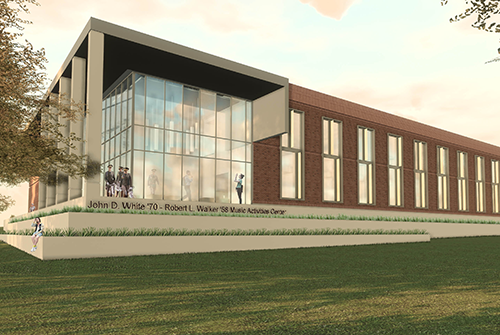 Gifts from Elizabeth and Paul "Haskell" Motheral ’52 highlight the beginning and end of the fundraising campaign for the new John D. White ’70 – Robert L. Walker ’58 Music Activities Center.