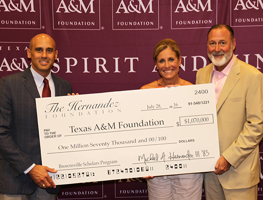 “I experienced firsthand a high-quality education from Texas A&M and want to share that tremendous experience with young people from my hometown by making their college education more affordable,” said Hernandez. “The Brownsville Scholars Program will allow students from this area to receive the best education possible and encourage them to return to their hometown to share their talents.”