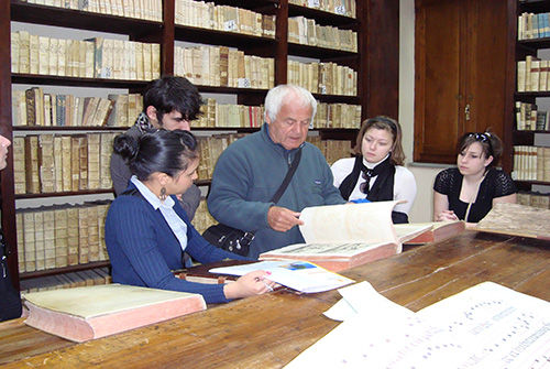 Paolo Barucchieri, director of the Santa Chiara Study Center, directs a tour for study abroad students. A scholarship endowed by two former students has been established to honor Barruchieri, who died in 2012.