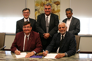 Clockwise from top left: Boon Chew, Head of the Department of Nutrition and Food Science; Mian Riaz, Graduate Faculty in the Department of Nutrition and Food Science; Quadir A. Latifi, IFANCA's Director of Administration; Muhammad Munir Chaudry, IFANCA's President and Chairman of the Board; and Mark Hussey, Vice Chancellor and Dean for the College of Agriculture and Life Sciences.