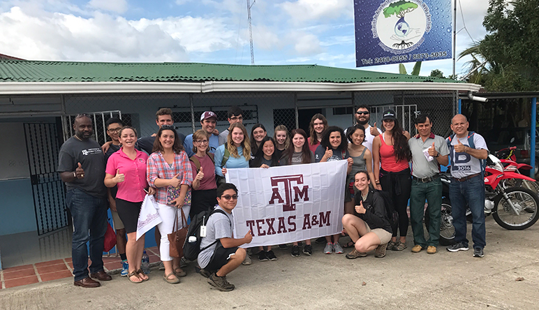 The College of Geosciences underwrote most of the cost of the trip to Costa Rica, though students paid their own airfare. The total cost per student for the 10-day trip was about $1,200. While in Costa Rica, students stayed at the Texas A&M University Soltis Center for Research and Education in San Juan de Peñas Blancas. Students worked with and learned from the local community water officials: They hiked up mountains to springs that supply the town’s water to test for purity; visited a local school to teach youngsters about sanitation, hygiene and conservation; and studied the area’s wastewater systems to find ways to improve it.