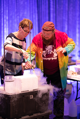 A fourth presentation showcased the magic of the Chemistry Road Show, a public service program in the Texas A&M College of Science that brings the excitement of science to children and teachers across Texas. Dr. James Pennington, the program’s coordinator for the past 10 years, performed a small portion of his show to attendees. Audiences were dazzled by chemical wonders, colorful reactions and experiments that stretched their minds.