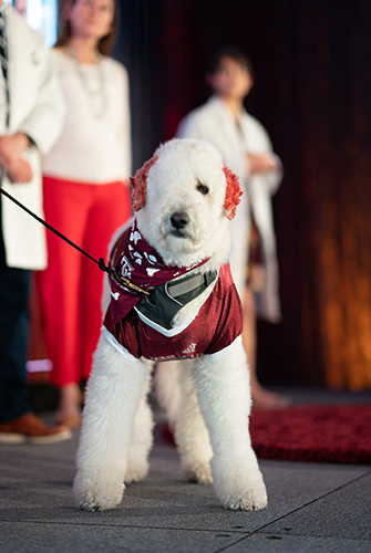 Attendees also met Werner, a dog who overcame the odds of a devastating, cancerous tumor with help from an interdisciplinary team of doctors at Texas A&M’s Small Animal Hospital in the College of Veterinary Medicine & Biomedical Sciences. Through innovative technology, the group surgically removed the tumor and replaced a section of Werner’s skull with man-made bone created on a 3-D printer. Today, Werner is living a happy and healthy life with his owner in Austin.