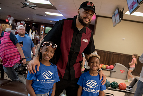 The bowling alley at Grand Station Entertainment is packed, and everyone wants to talk to Mike Evans ’15. It’s been one year since he made his last public appearance in College Station, Texas, and six years since he last geared up to play football for Texas A&M University. But judging by the sizable crowd at his celebrity bowling event and fundraiser, the Aggie faithful haven’t forgotten about him for a second.