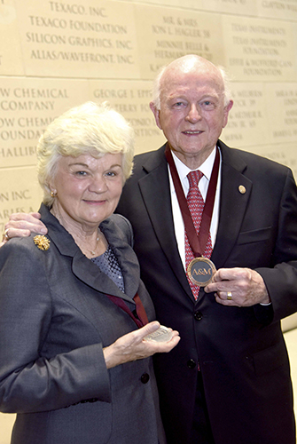 Alice and Erle Nye '59 were honored by the Texas A&M Foundation Board of Trustees as recipients of the Sterling C. Evans Medal.
