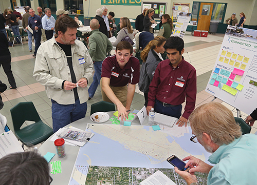The program, initially known as Texas Target Cities, officially formed in 1993 when the late Dr. David Pugh, a faculty member in the College of Architecture’s Department of Landscape Architecture and Urban Planning, noticed that small communities needed assistance in creating comprehensive plans, master plans and land-use plans. “We’ve had generations of planners go through the program, working with real communities learning to do this in a service-learning capacity,” said TxTC Associate Director Jaimie Masterson ’06.