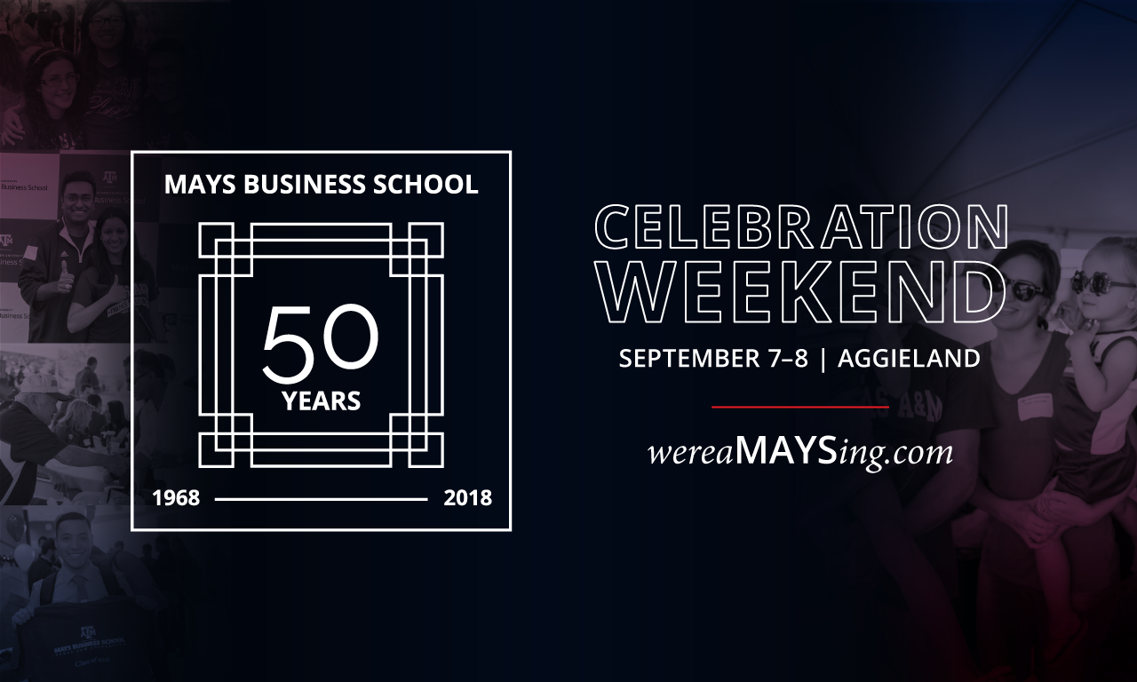 Texas A&M's Mays Business School will host the "We are aMAYSing" celebration September 7-8 in honor of its 50th anniversary.