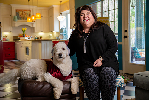 Andrea Streicher and her dog, Werner, are grateful for the care they received at Texas A&M’s Veterinary Medical Teaching Hospital (VMTH). Werner had a bleak prognosis until VMTH staff members came up with an innovative solution for his treatment.