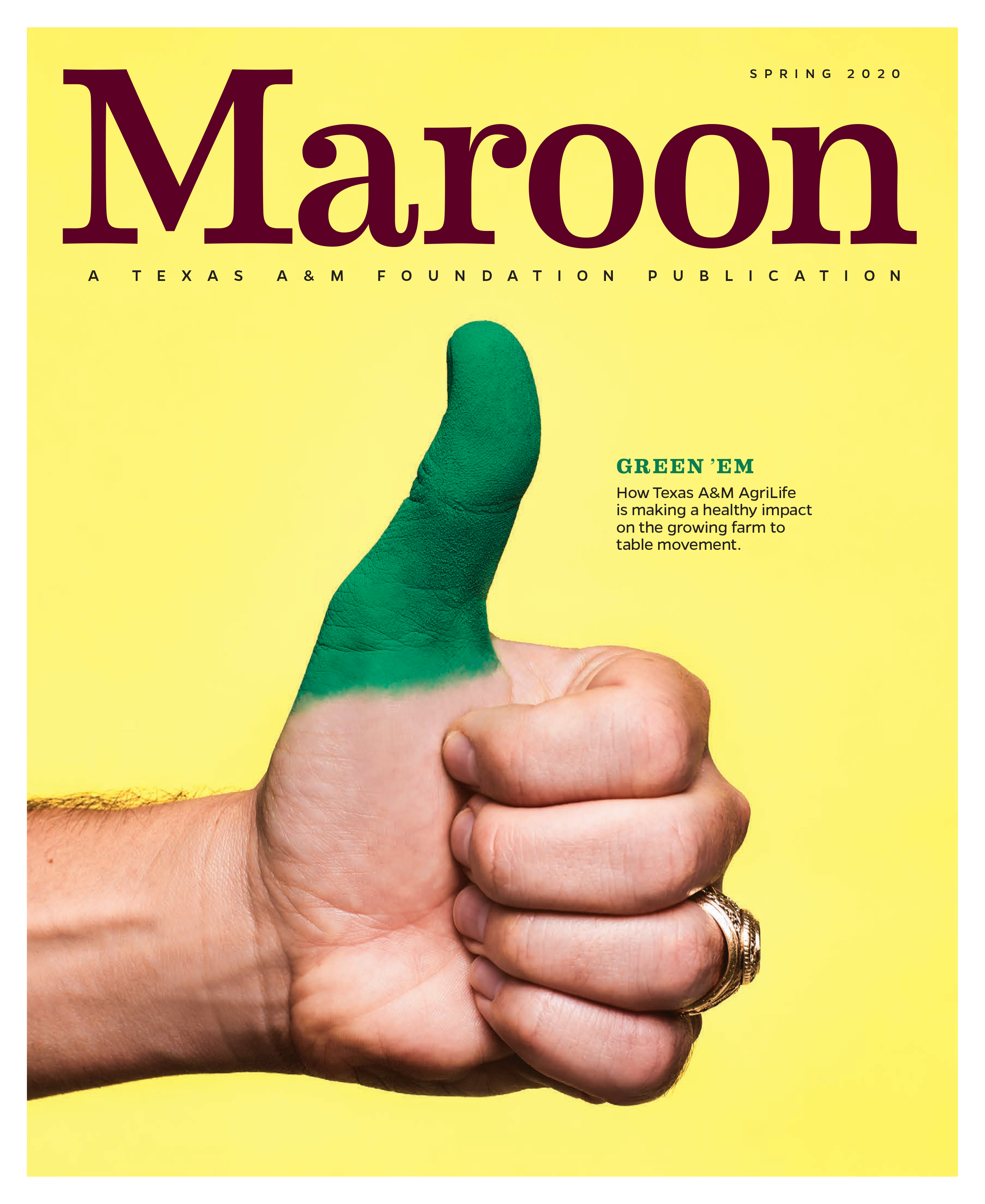 Welcome to the first edition of Maroon! Our inaugural cover feature explores how Texas A&M AgriLife is making a healthy impact on the growing farm to table movement.